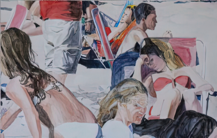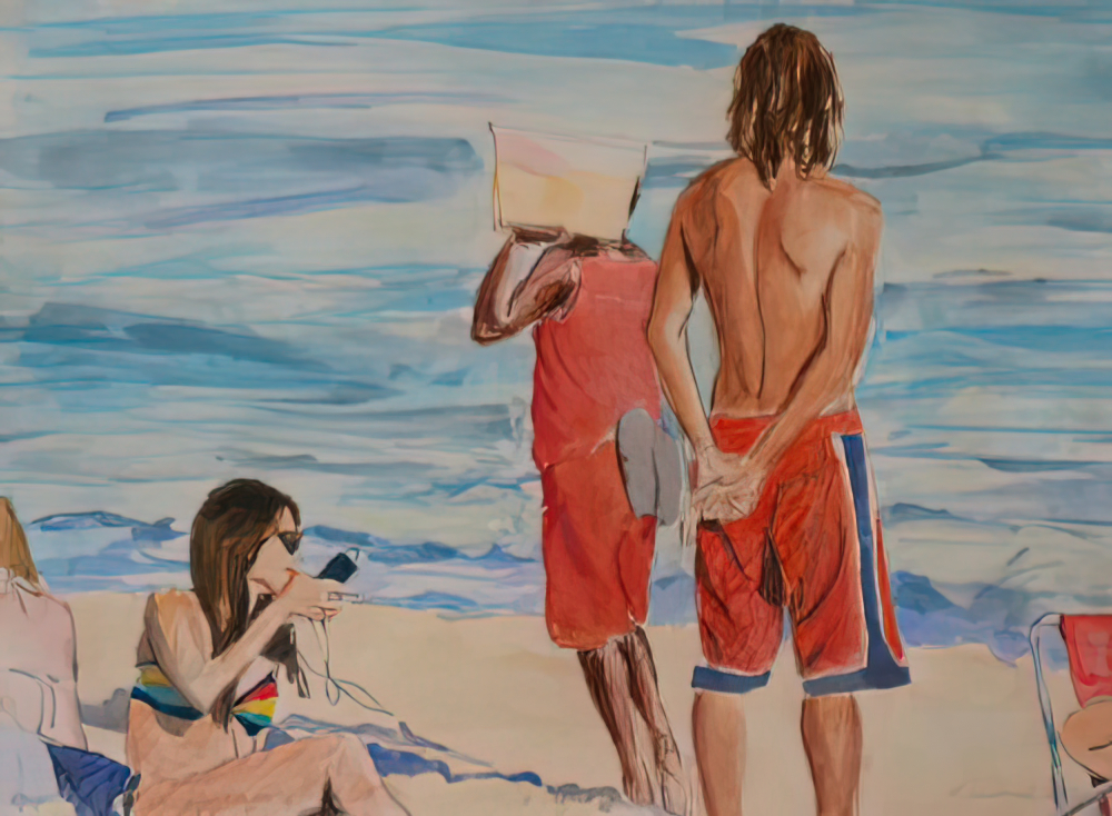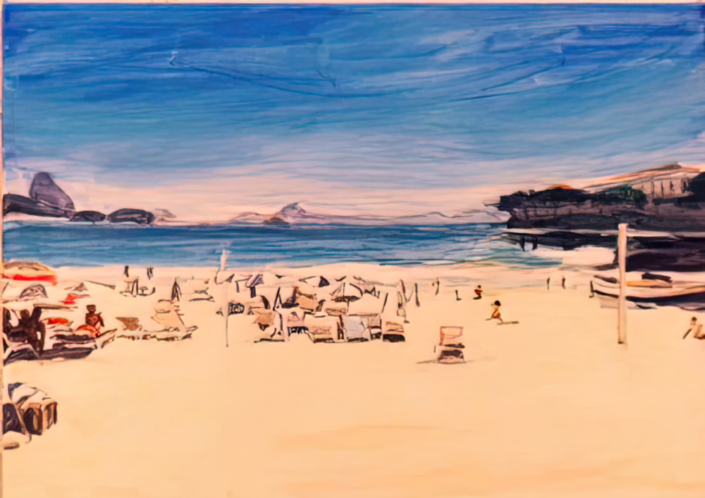 NA PRAIA DE IPANEMA WATERCOLOR AND GOUACHE ON PAPER, 50.3CM X 71CM