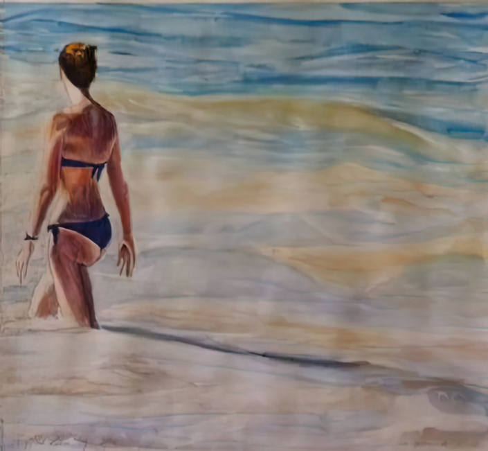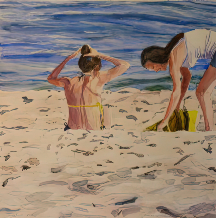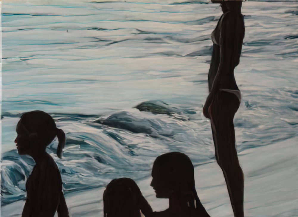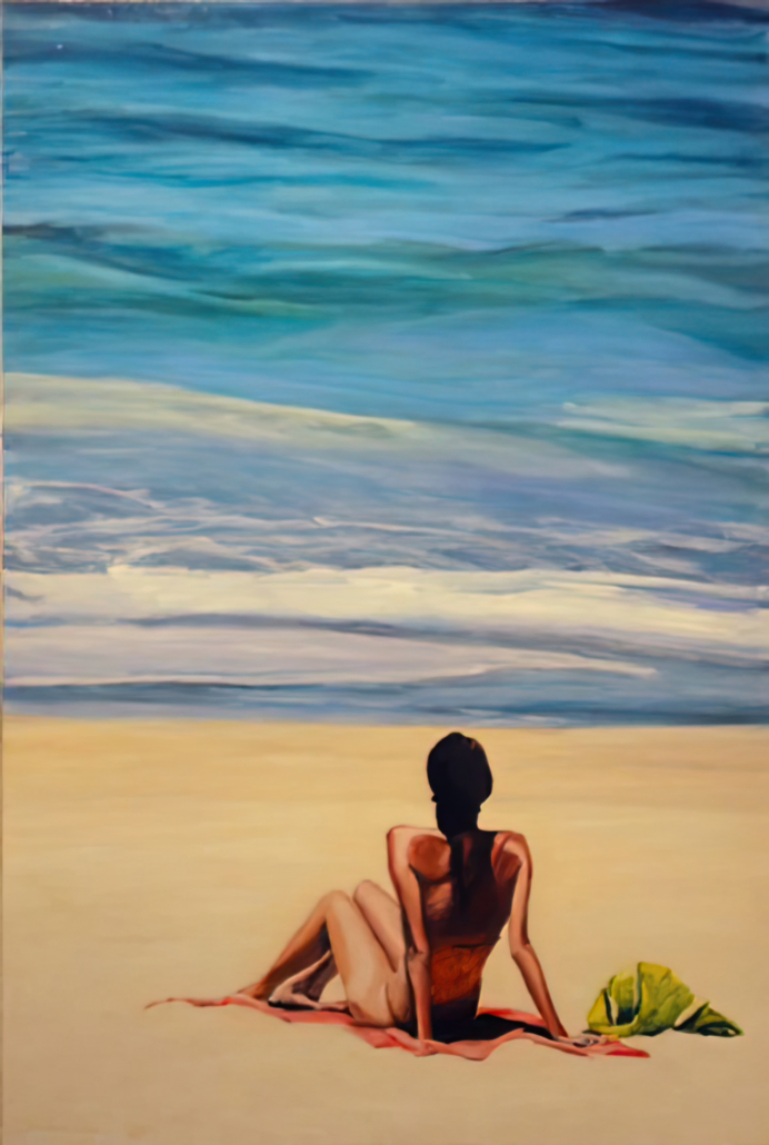 AT THE CALM SHORE BATHED BY THE SUN OIL ON LINEN, 120CM X 80CM