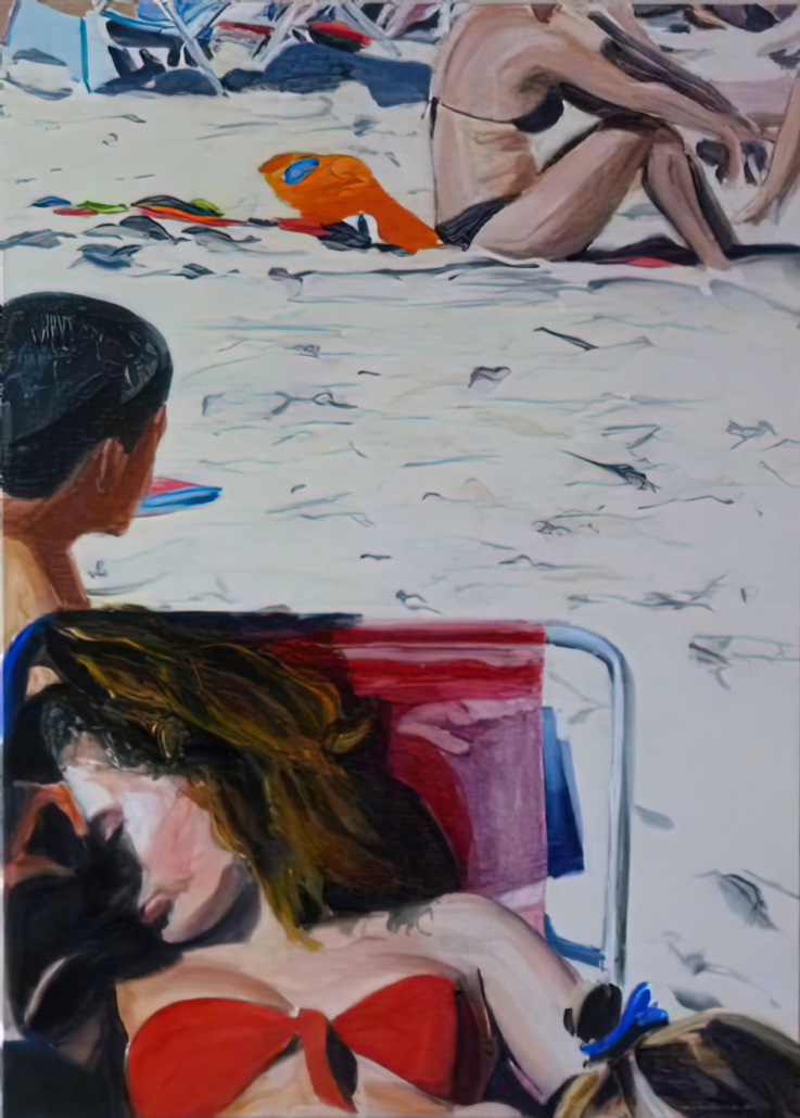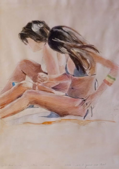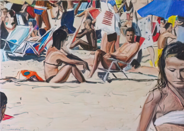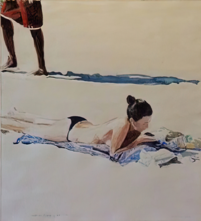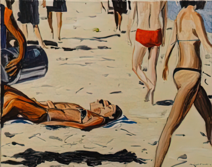 THE SUNBATHERS OIL ON CANVASS, 60CM X 90CM