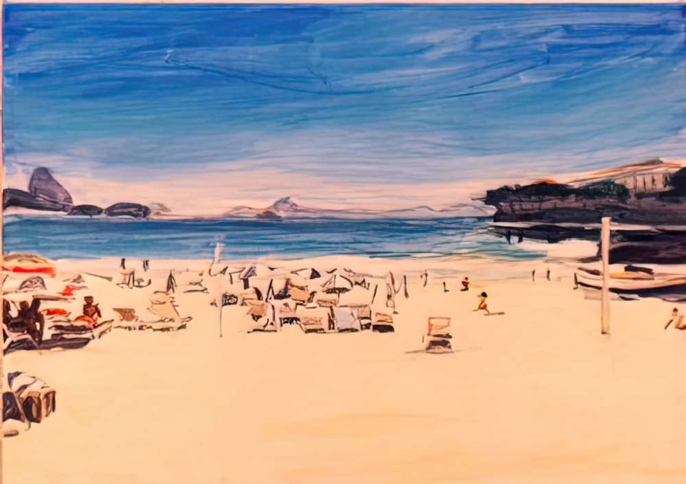 OIL STUDY FOR A SCENE FROM THE BEACH OF IPANEMA OIL ON CANVASS, 75CM X 50CM